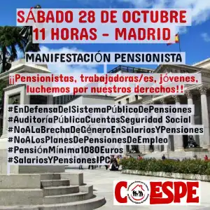 Sincronizando nuestras luchas y llenando las calles de Madrid el 28 de octubre. Unidos, organizados y adelante: venceremos. Gobierne quien gobierne las pensiones y los derechos públicos se defienden.