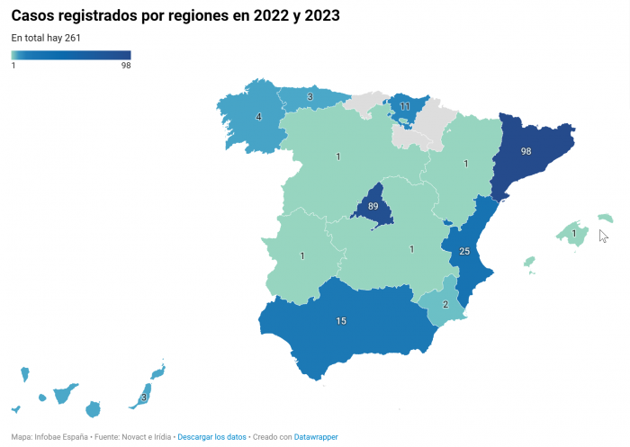 En ese sentido, Cataluña sigue siendo, por séptimo año consecutivo, el territorio donde más casos se han documentado y, por consiguiente, más vulneraciones, con los movimientos por la vivienda como los más criminalizados. No obstante, en Madrid, el segundo territorio con más casos y donde más se ha criminalizado la protesta, los movimientos ecologistas han sido los más perseguidos.