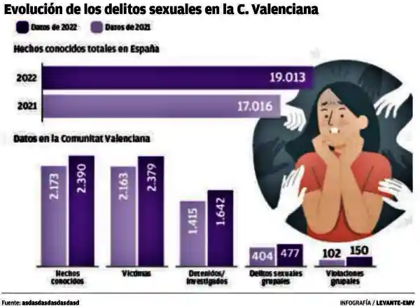 Como señala la periodista Teresa Domínguez en Levante-emv.es, esta comunidad presenta la mayor tasa de delitos sexuales cometidos en grupo por cada 10.000 habitantes, tras Ceuta y Baleares, mientras que los ataques sexuales han crecido más del doble en una década en España, que ya contabiliza 19.013 casos al año.