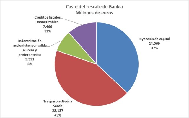 Además de la inyección de capital, en el coste del rescate a Bankia “se olvida” computar el traspaso de activos a Sareb (el banco malo), las indemnizaciones a accionistas minoritarios por la salida fraudulenta a bolsa y a los preferentistas y los créditos fiscales monetizables.