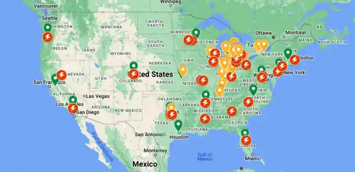 Las marcas rojas indican que las instalaciones de UAW Big 3 están en huelga a partir del 22 de septiembre al mediodía.