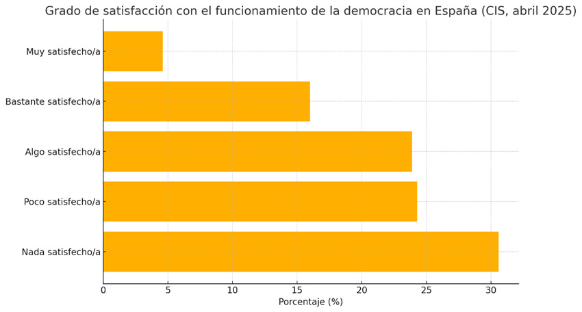 Fig 1. 📊 Grado de satisfacción con la democracia. Fuente: CIS, Estudio 3497, abril 2025.
