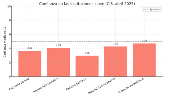 Fig. 2. Confianza en las instituciones clave. CIS. Estudio 3497. Abril 2025.