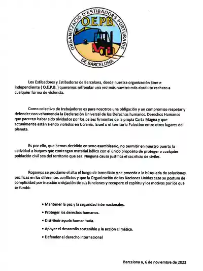 Los Estibadores y Estibadoras de Barcelona, desde nuestra organización libre e independiente (OEPB) queremos refrendar una vez más nuestro más absoluto rechazo a cualquier forma de violencia.