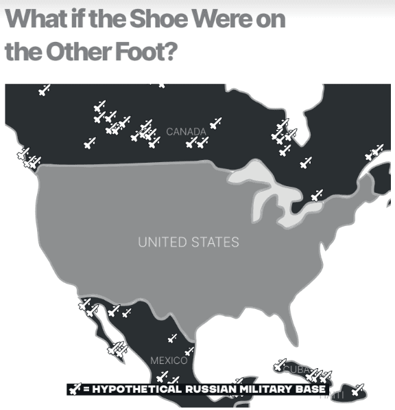 Desde 2007, Rusia ha advertido repetidamente que las fuerzas armadas de la OTAN en las fronteras rusas eran intolerables, al igual que las fuerzas rusas en México o Canadá serían intolerables para los Estados Unidos ahora, o como lo fueron los misiles soviéticos en Cuba en 1962. Rusia señaló además la expansión de la OTAN en Ucrania como especialmente provocativa.