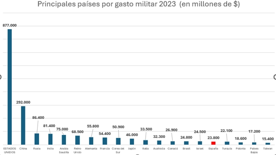 A título de ejemplo, veamos por gasto militar como España, según el SIPRI, está en el puesto número 16 en gasto militar mundial.