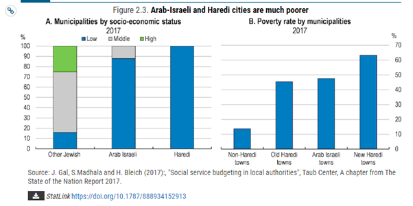 Por supuesto, la pobreza y la brecha de desigualdad son mucho mayores para los ciudadanos árabes de Israel, que representan alrededor del 20% de la población de Israel. Pero las tasas de pobreza también son altas en las comunidades judías ortodoxas, que representan una décima parte de la población. En cuanto a Gaza y Cisjordania, los niveles de pobreza son horrendos.