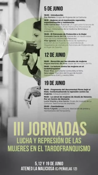 Si bien la investigación y difusión de las luchas de las mujeres en la Guerra Civil y en posguerra han ido aumentando a lo largo de los últimos años, aún existe un gran desconocimiento acerca del papel que estas tuvieron en el último periodo de la dictadura. Este es el motivo que lleva al Grupo de Mujeres de La Comuna, asociación de presxs y represaliadxs por la dictadura franquista, a organizar estas Jornadas sobre la lucha de las mujeres en el tardofranquismo.