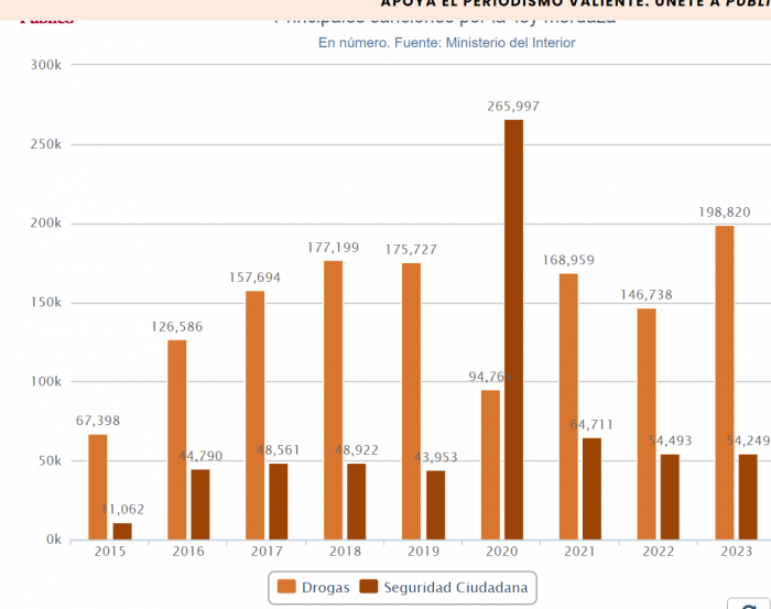 Desde la entrada en vigor de esta ley, en torno al 60% de las multas se han impuesto por consumo de drogas: 1.313.886 sanciones en total por hacer uso o estar en posesión de sustancias ilegales en espacios públicos -nunca por traficar con ellas-, lo que ha supuesto una recaudación de 839,5 millones de euros.