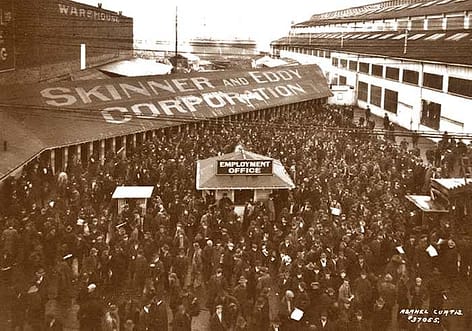 Entre el 6 y el 11 de febrero de 1919, 65.000 trabajadores en huelga tomaron la ciudad de Seattle. Los paros habían comenzado en el astillero, de las reivindicaciones laborales pronto pasaron a las políticas: la solidaridad arrastró a los obreros del resto de las empresas.