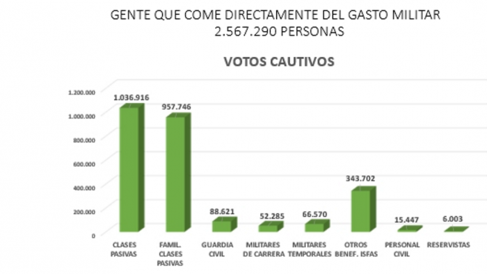 Los partidos políticos no tienen ninguna intención de hablar de política de defensa y mucho menos a remover en época electoral el caladero de votos cautivos que supone el contingente de más de dos millones y medio de personas que comen del presupuesto de Defensa.