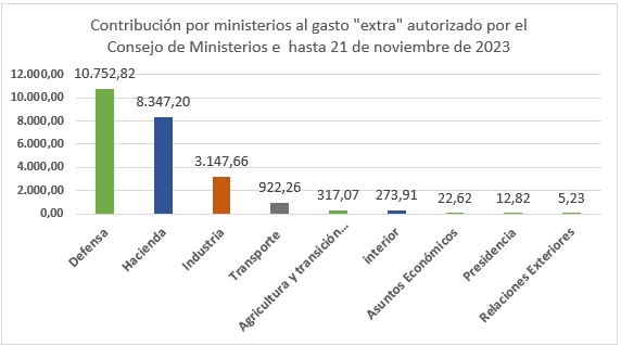 Pero si la cifra y su utilidad inconfesada marean, mayor es el desconcierto si además comprobamos que, a lo largo del año, el Gobierno en 32 Consejos de Ministros y Ministras y con 148 acuerdos específicos, ha aumentado el compromiso de gasto militar entre 2023 y los años siguientes en otros 23.374,85 millones de euros más hasta el último Consejo de Ministros de 14 de noviembre.