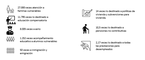 Un gasto con el que podría haberse dedicado a desarrollar distintas necesidades esenciales para la defensa social de la seguridad humana, como por ejemplo, las que consignamos en el cuadro siguiente.