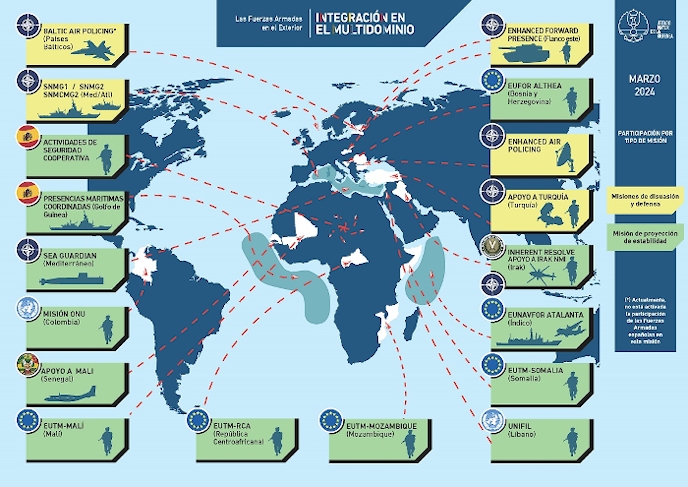 El Ministerio de Defensa se ha decidido a actualizar su infografía sobre las operaciones militares españolas en el exterior vigentes en la actualidad.