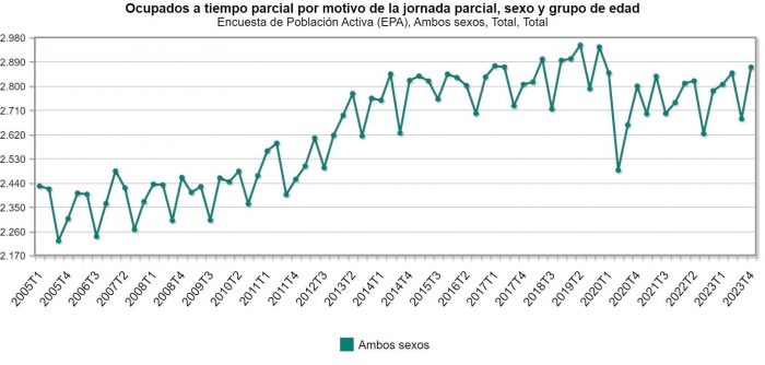 Los datos de la contratación a tiempo parcial también dejan bien a las claras su incremento constante desde el año 2005: