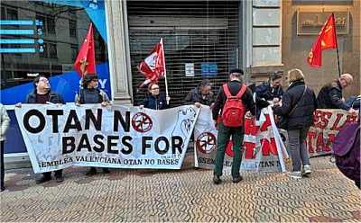 En la tarde del martes 12 de marzo y cuando se cumplen 38 años de la celebración del referéndum que en España aprobó la pertenencia a la Alianza Atlántica-OTAN, la Asamblea valenciana OTAN NO-Bases fuera, integrada por diversos partidos de la izquierda, entidades y personas a título individual, se ha concentrado en València frente al Consulado de Estados Unidos para denunciar la subordinación del estado español a los intereses imperialistas de EEUU; exigir la paz y el fin de las guerras en curso, particularmente en Gaza y Ucrania, así como la salida inmediata de nuestro país de la OTAN y el cierre de las bases.